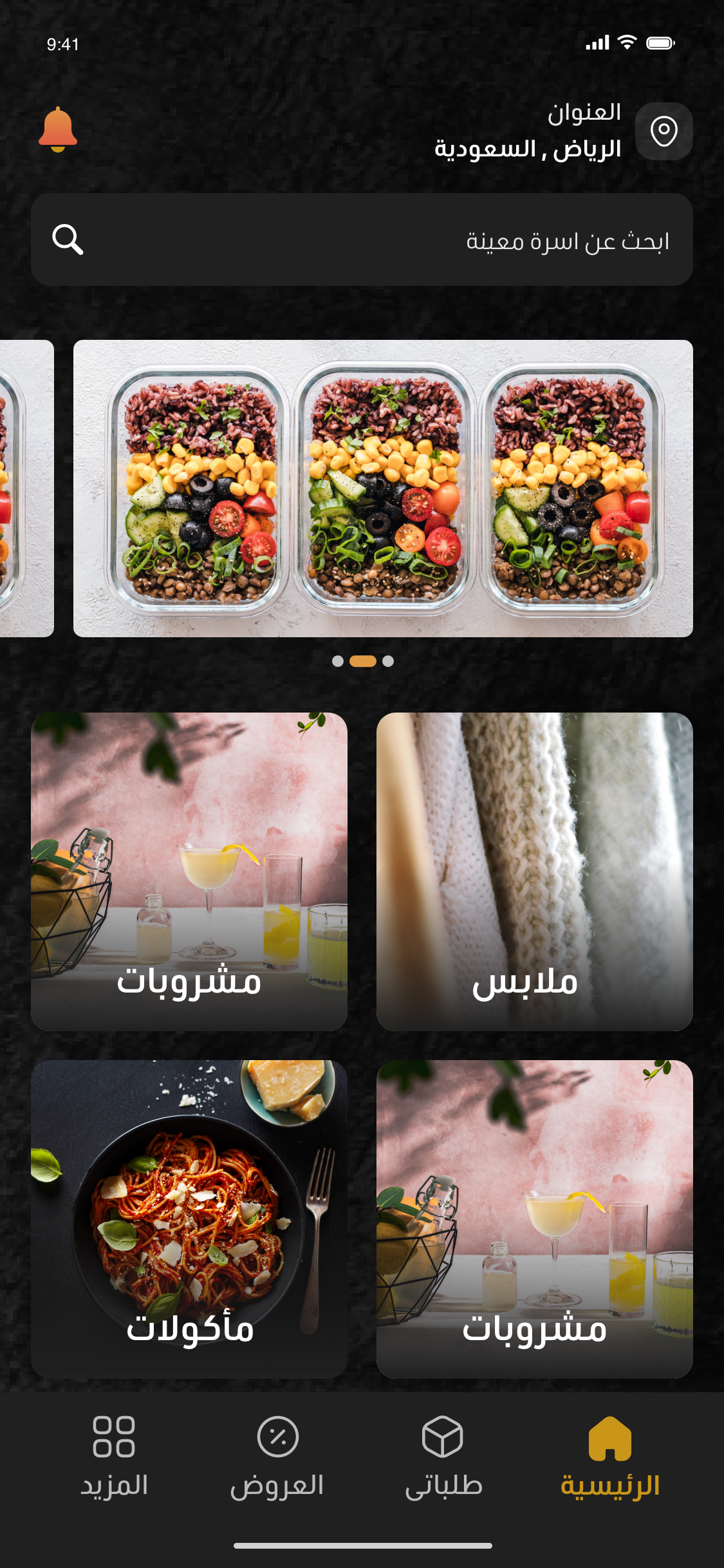 يتيح للعملاء تصفح المنتجات حسب الفئات مثل الطعام، الديكور، الملابس، وغيرها، مع إمكانية البحث عن منتجات محددة أو الأسر المنتجة القريبة من موقعهم
